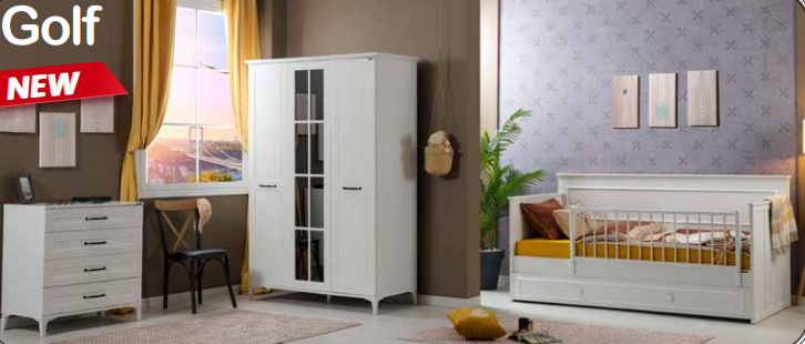 Chambre d'enfant complète de style champêtre "Golf" en blanc avec canapé lit.