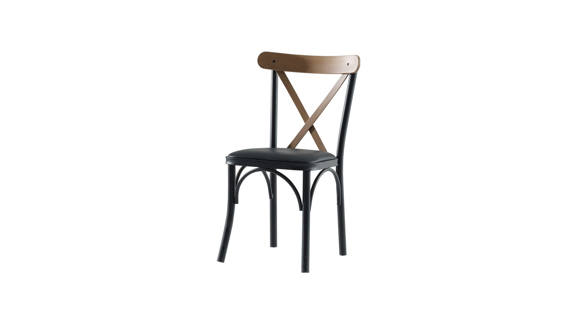 n.1 chaise noire et couleur bois avec assise rembourrée en simili cuir noir