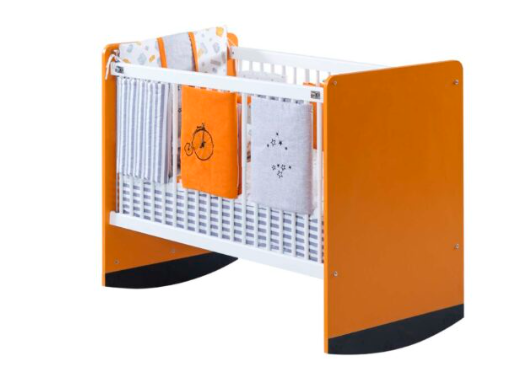 Cameretta completa per neonati colore grigio, arancio, nero e legno.