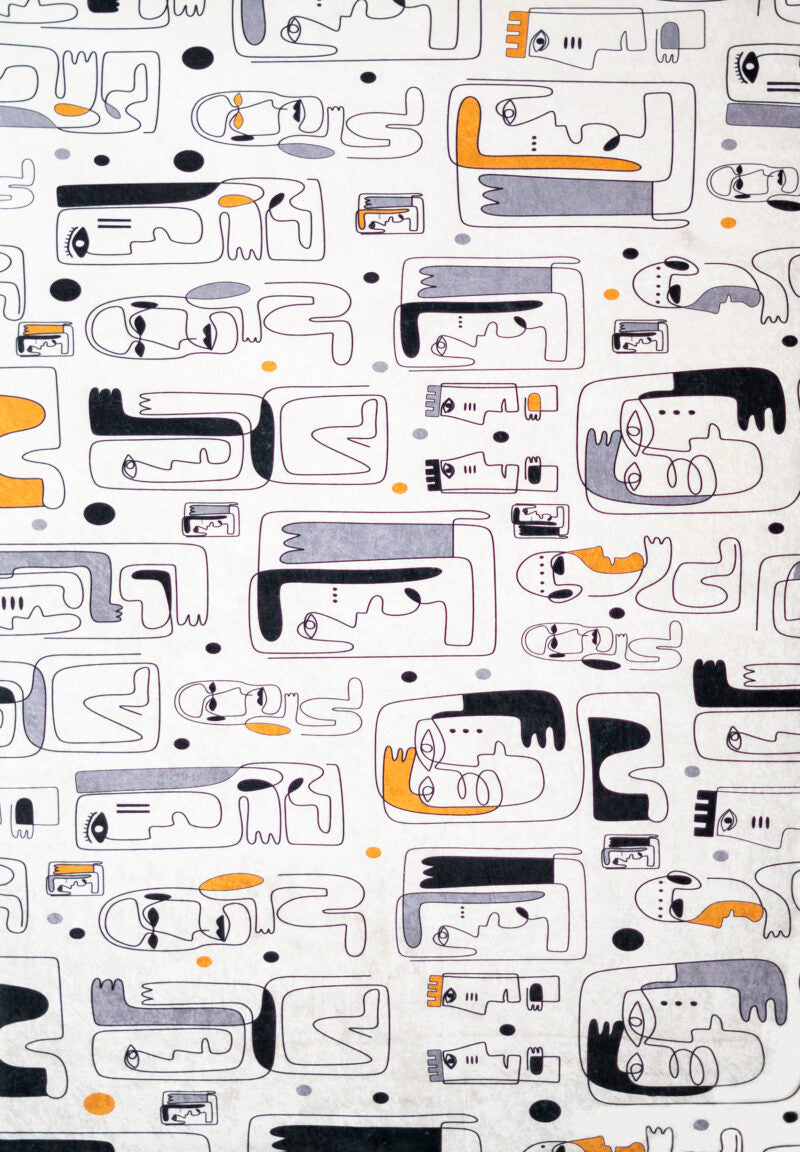 n. 1 tappeto a fantasia sui toni del grigio, nero ed arancio (cm): 120x75